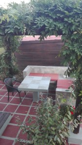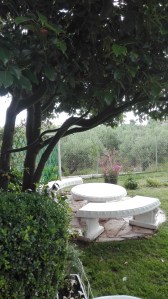 Δυο παγκάκια, κτιστό- τσιμεντένιο τραπέζι, κιόσκι φυσικό (σχεδόν)