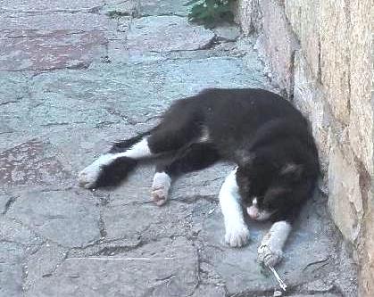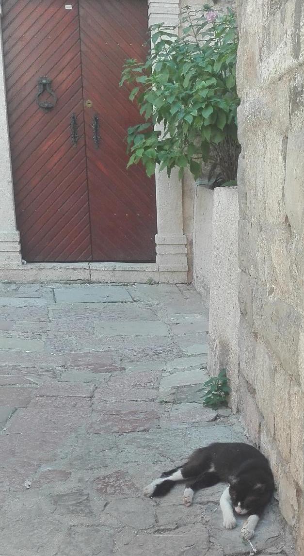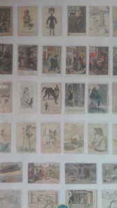 Γάτες νωχελικές, σνομπ, σίγουρες, ατάραχες, σουλατσάρουν στα σοκάκια, επιτηρούν τους υπηκόους. Μπαίνω μέσα στο ιερό (το λένε ‘μουσείο’) και προσκυνώ. Φωτογραφίες, κάρτες, παραμύθια, παρτιτούρες, γραμματόσημα…Διαχρονικά η λατρεία της γάτος τότε και σήμερα, εδώ και κει και παραπέρα. Είναι παντού: σε φωτογραφίες ανάμεσα στους μάχιμους του Α’ Παγκοσμίου Πολέμου,, σε παρτιτούρες περασμένων αιώνων, σε ασιατικές γκραβούρες, στους στίχους ενός αραβικού ποιήματος…