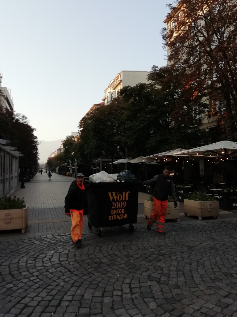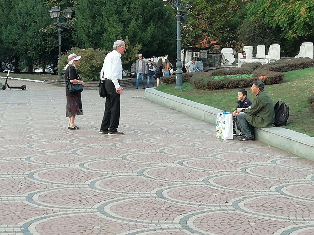 Η Βουλγαρία βρίσκεται στο κατώτατο σημείο του βιοτικού επιπέδου μεταξύ των κρατώ-μελών της Ευρωπαϊκής Ένωσης, αλλά ξέρει και το κρύβει καλά στο κέντρο της πρωτεύουσάς της: καταστήματα και άνθρωποι φιγουρίνια ρεκλάμας ! Στο μυαλό μου έρχεται το ταξιδιωτικό αφήγημα του Καζαντζάκη σαν πήγε στη σοβιετική Ρουσία και ένας καλοθελητής του μίλησε για τα επιμελημένα σκηνικά που στήνονταν στο πέρας της άμαξας της Μεγάλης Αικατερίνης, όταν εκείνη επιθεωρούσε τις συνθήκες ζωής των υπηκόων της. Όχι, δεν επιθυμώ να δω το από πίσω. Θα υποδυθώ τη …Μεγάλη Αικατερίνη, παρακαλώ εν πλήρη συνειδήσει αφήστε με στην πλάνη μου.