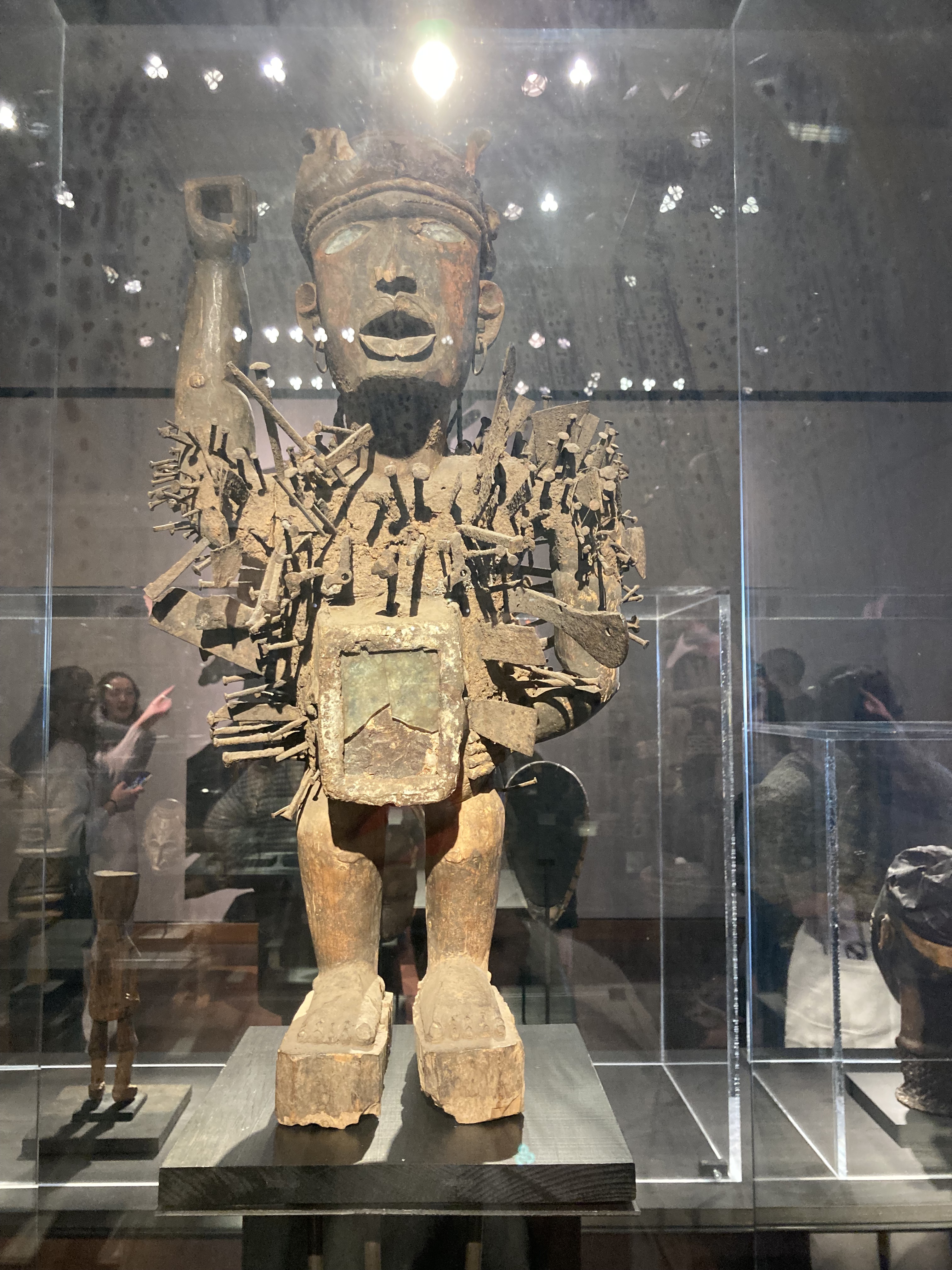 The Nkisi female figure, sculpture from the democratic republic of the Congo, was used to protect a community from malevolent forces and disease, today looks at me apologetically since she failed to accomplish her mission deceived by the greedy western man.