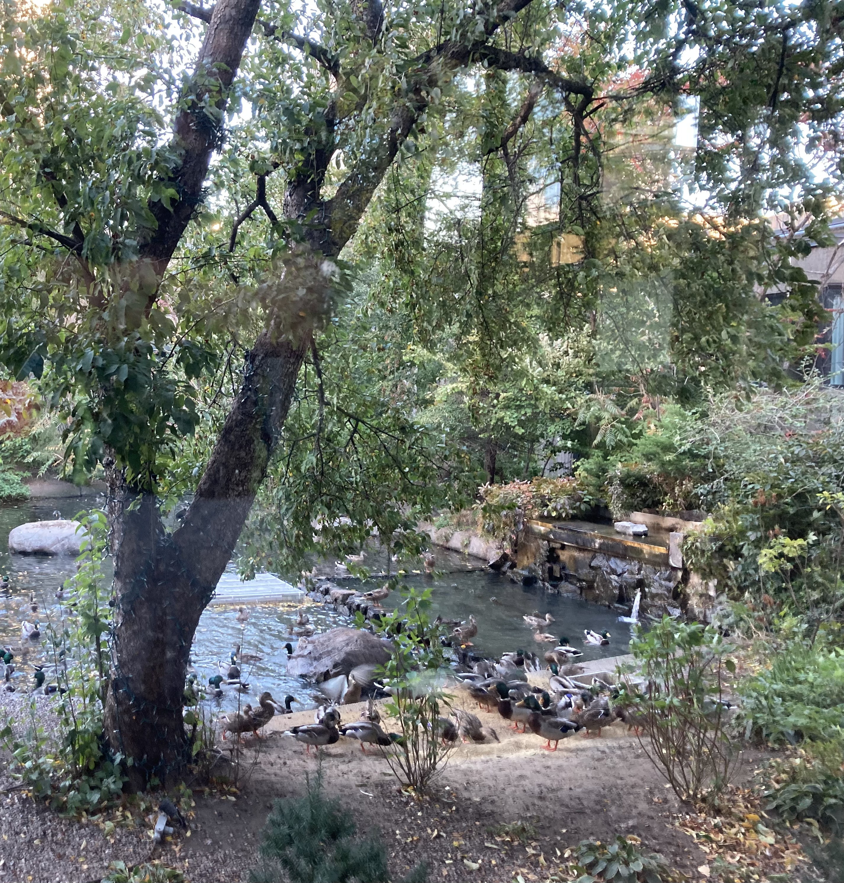 Back to Montreal for our last night in the country, we stay in a hotel located on the 10th floor of a skyscraper. From the room’s window i look the lights coming from the surrounding skyscrapers, wondering if i am in Blade runner’s cast, another synthetic humanoid, a replicant waiting for Harrison Ford to execute me … Or did he eventually turned to a replicant as well ? Next morning there was a surprise waiting for me: inside the hotel located on 10th floor a tiny paradise of stunning gardens and streams with ducks floating on the water!
